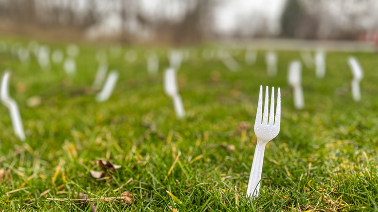 The trick works because some animals may mistake the utensil for another animal or predator, forcing them to scurry away in fear. Other creatures might be looking through the soil for a bite to eat and possibly accidentally step on a sharp fork bit in the process. Rabbits, birds, and other furry beasts may also be put off by the human scent found on the plastic forks and could feel like they need to stay away.