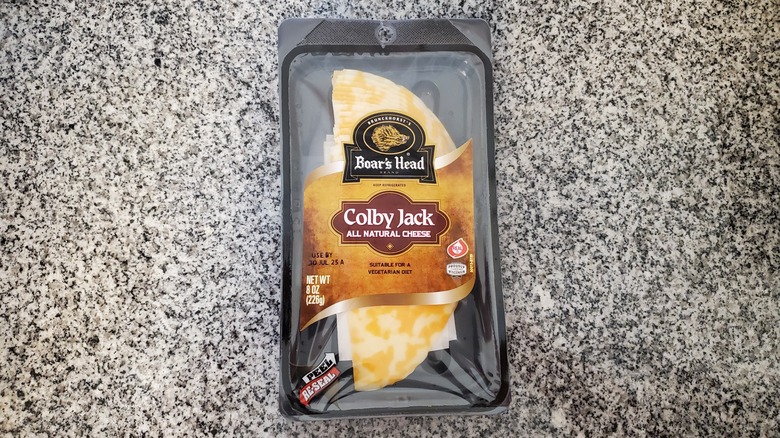 While the flavor of this colby jack cheese is good overall, there is one thing that I don't really love — its shape. While the other Boar's Head cheeses I tasted all had a pretty standard square/rectangular shape, this one does not. Instead, it is shaped like a half circle. While it looks interesting, it isn't really practical for pairing with most types of bread. The cheese is so long that you'll likely need to tear it in half to get it to fit on anything other than a sub roll.