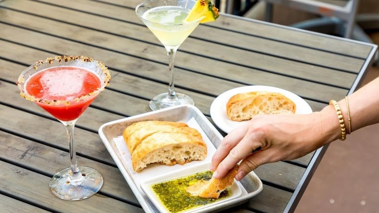 Since Bonefish Grill is a seafood restaurant, you may be surprised that the bread that comes to your table looks like something you'd get at an Italian restaurant. The large, shareable square piece of white bread is scored diagonally — so you don't need a knife to cut it at the table — and comes with olive oil infused with herbs and garlic, as well.