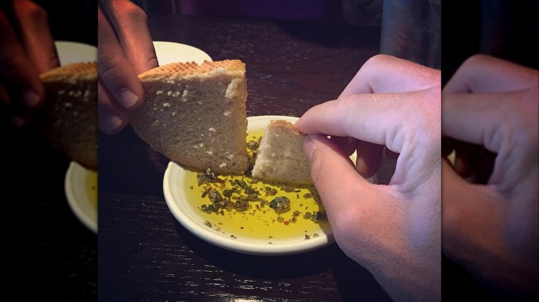 Another chain that offers a free appetizer to tide you over while you wait for your meal is Carrabba's Italian Grill. In fact, its delightful bread sets the standard when we anticipate getting bread from an Italian spot. It's also the first place we ever experienced getting herb-infused olive oil with free table bread, which some on social media say is not a common practice in Italy itself.