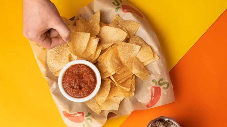 Chili's is another Southwestern-style restaurant where you can get free chips and salsa ... but there's a catch to getting it. At first glance, it certainly looks like you can get free chips and salsa (or your choice of non-alcoholic beverage) every time you visit Chili's if you're a rewards member. However, in the fine print, the website stipulates that you have to spend at least $5 on other menu items to receive those rewards, which makes sense. Otherwise, customers would likely come in for their free chips and salsa, then leave.