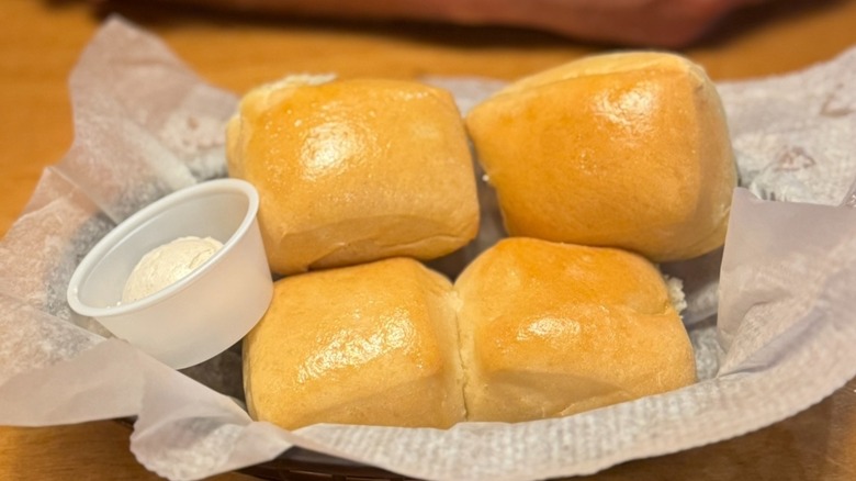 Now, all meals come with some of the restaurant's famous rolls. But if you're doing a to-go order and want to have plenty on hand, you can also order rolls in packs of six or 12 for less than $0.50 per roll (as of June 2025). Furthermore, while it's rare that a free appetizer is so popular that it has its own merch, that's the case for the chain's delightful rolls and honey cinnamon butter. For example, you can get a heated bread basket that triples as a candle warmer, a coffee mug warmer, or a wax melter. The chain also sells honey cinnamon butter wax melts for the heated bread basket.
