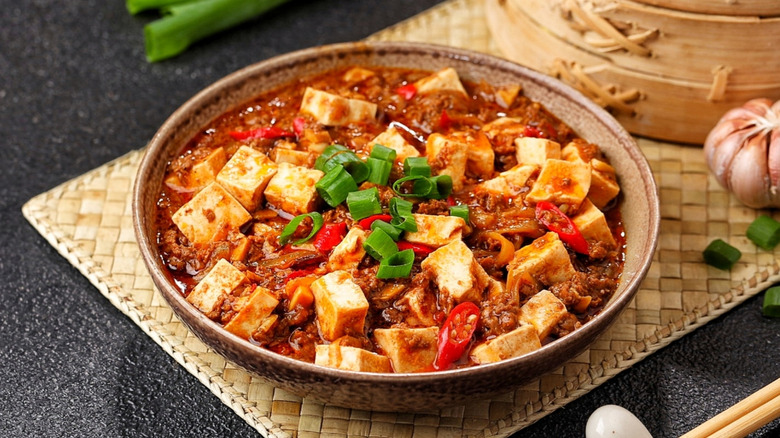 Mapo tofu dates back to 1862 in Chengdu, China — and its origin story is a bit unfortunate. The name of the dish, mapo tofu, actually translates to: "pock-faced old woman tofu." The name does not refer to the appearance of the dish, but rather to the woman who invented it. As the story goes, there was a restaurant in Chengdu run by a married couple. The wife, who had smallpox scars on her face, made a tofu dish unique and delicious enough to be named after her, so it was given her nickname, Mapo ("ma" meaning pockmarked, and "po" meaning older woman). The name stuck, and the dish itself had equal staying power. The original restaurant where it was invented, Chen Mapo Tofu, is actually still in operation in Chengdu to this day.