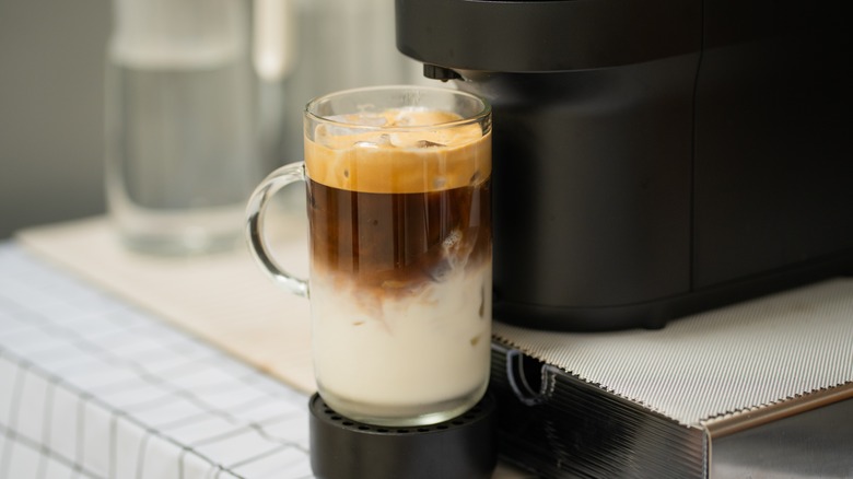 Nespresso machines may be great for making high-quality coffee drinks at home, but there is one drawback that will annoy any caffeine fanatic. The drip tray can mysteriously overflow and spill without you even realizing it was filled with liquid — until it's too late. It turns out the small saucer fills up quite quickly and can only hold roughly one espresso shot, according to one Reddit user who shared a photo showing their machine's drip capsule filled with espresso and extra liquid that had splattered onto the kitchen counter.