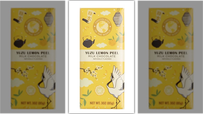For those who have never been to World Market, it's a store that offers things from home decor, kitchenware, trinkets, and food. Among the food, you'll find bars made by Chocolate of the World, some of which are exclusive to the World Market brand. There are six different flavors (at the time of writing this piece), and the most appealing for s'mores is the yuzu lemon peel milk chocolate bar. Wrapped in a bright yellow package and adorned with Japanese-themed illustrations to reference this flavor's origins, this chocolate bar would be a great way to liven up your campfire snack.