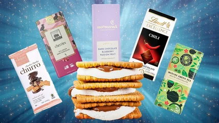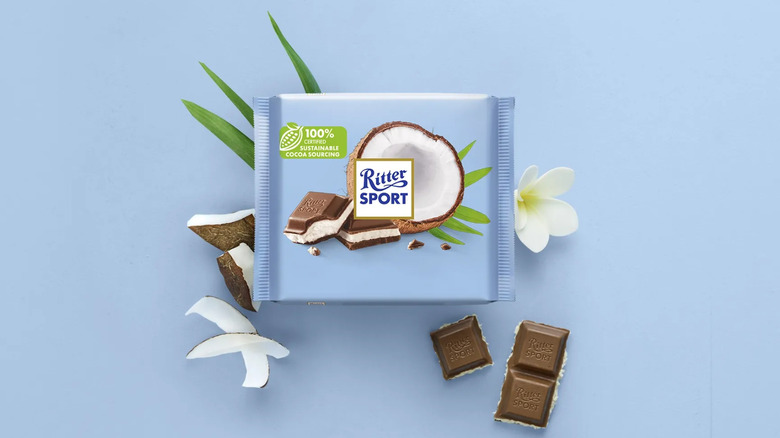Ritter Sport's coconut chocolate bar features sweet, creamy milk chocolate and crispy desiccated coconut. Much like the cornflakes bar, the coconut adds a great textural element not typically found in a s'more. In terms of the flavor upgrade, think of a piña colada in s'mores form. To go one step further, you could really up the flavor by adding a slice of grilled pineapple to your sandwich to make s'mores that will transport you to an island far, far away.
