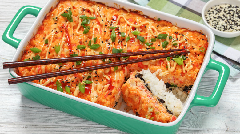 If you're willing to break with tradition, there are even more options out there for you. You can try something fun and different, like cucumber sushi boats. Making sushi in a casserole dish doesn't deliver exactly the same experience, but there is a reason that these salmon sushi bakes are super popular.