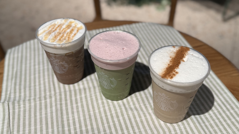 Most beverage chains celebrate the change in seasons with a roll-out of new drinks and nibbles, as well as welcoming back favorites from years past. However, a launch of a season's menu doesn't mean there isn't more to come. Summer 2025 Starbucks re-whetted the appetites of devoted customers on May 20, with the resurrection of boba-friendly Summer-Berry Refreshers. It introduced Iced Horchata Oatmilk Shaken Espresso and the Strawberries & Cream Cake Pop, newbies to the menu. Instead of taking off the rest of the summer, the caffeinated chain ushered in four Frappuccinos for thirsty fans to enjoy.