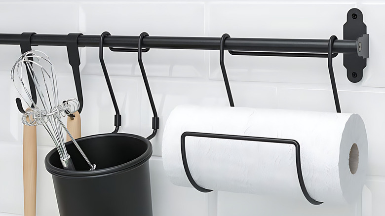 Sometimes the smartest kitchen storage solutions tend to also be the simplest. The Ikea FINTORP rail system is a perfect example of this. With just a rail, a few S-hooks, and a wall to mount them on, you can turn otherwise unused vertical space into a hardworking storage hub for utensils, pots, or even colanders and cutting boards. This hack is especially ideal for small kitchens or anyone who's ditched their upper cabinets in favor of a more open, breathable layout.