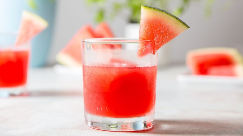 - Garnish each glass with a small triangular slice of watermelon and serve immediately.