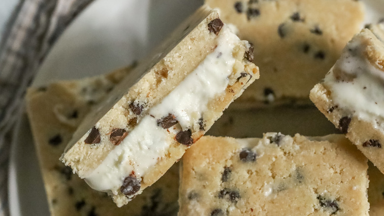 Step 9: Slice and serve the cookie dough ice cream sandwiches