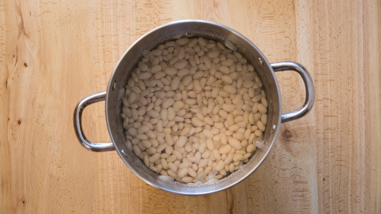 - Place the beans back in the pot, cover them with water by a couple of inches, and bring the water to a boil.