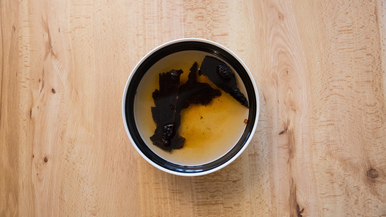 Rehydrate the chiles by placing them in a bowl, covering them with hot water, and letting them sit for 30 minutes.