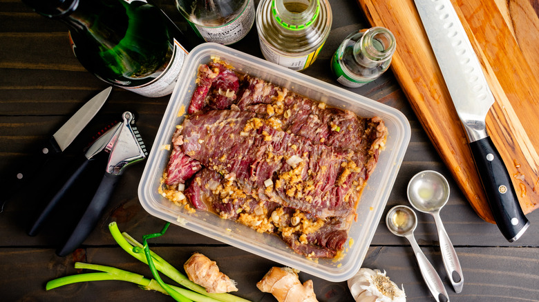 If you need to cook a cut of steak quickly so it doesn't consume all of your attention while guests wait, skirt steak is an ideal option. Thin, long, and sometimes more affordable than other types of steak, it's a decent go-to whether time is of the essence or not. While skirt steak is one of those cuts that needs a little prep work before it hits the flaming grill, it can be done ahead of time so you're ready to go when the cookout or dinner party gets started.
