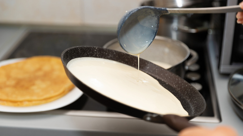 In some European countries, learning how to make good crepes is almost like a rite of passage. Though the recipe is pretty straightforward, everybody knows that the smallest tweaks to the ingredients or technique can yield a very different end result. While we're mostly aiming to fill the crepes with delicious ingredients, the flavor and texture of the papery-thin pancakes is still important — and one of the best ways to ensure they're perfect is allowing the batter to rest in the fridge, before cooking.
