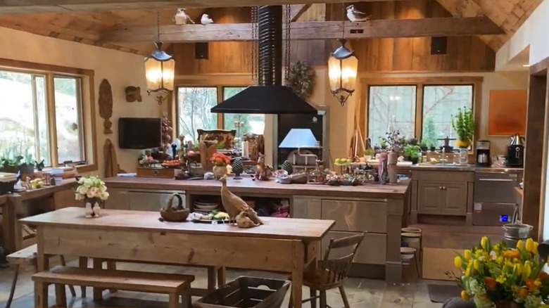 A dated or grimy-looking range hood is one of the signs that it's time to remodel your kitchen. Yet this feature costs the average homeowner $700, and that scales over $1,500 for custom designs. With such a large bill looming, it's no wonder individuals are seeking ways to cut costs. It's possible, too; celebrity chef Rachael Ray had a stroke of genius and managed to craft a beautiful hood on a budget. In a video tour of her home kitchen shared by "Rachael Ray Show" on YouTube, Ray spilled the beans on the gorgeous black feature: "The hood is super cheap industrial piping and literally black spray paint on it," she explained.