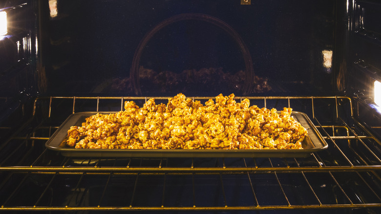 Heating your popcorn back to life in the oven is a great method to revive your stale popcorn, but it's not the only option at your disposal. Stale popcorn makes for great caramel corn or chocolate-covered popcorn, since the sweet additions provide that crunch it could be missing. You can also mix it with sugar and corn syrup to achieve festive popcorn balls.