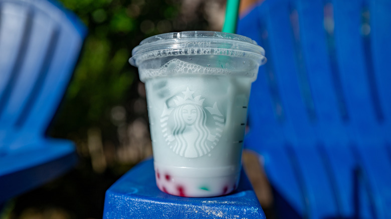 The Gummy Shark drink is simple enough to order; it's simply a Summer Skies Refresher (which was well-reviewed in Tasting Table's ranking of Starbucks Refreshers) with the raspberry boba removed and vanilla sweet cream cold foam added. The Summer Skies refresher is described on Starbucks' site as "a sweet summer blend of raspberry, blueberry and blackberry flavors, shaken with ice and creamy coconutmilk." With the added sugary taste of vanilla cold foam, the drink will be incredibly sweet, just like its namesake gummy shark candy. It's a wonderful option to both celebrate summer and get a hit of nostalgia from the days of eating gummy candy as a child.