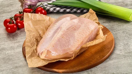 Trim any excess fat from the breast, and it'll be ready to cook skin side down on a hot skillet or baked in the oven with veggies (this sheet pan chicken recipe marinated in honey and lemon is a great place to start). However, if you want to remove the skin, get your fingers underneath it and give it a tug. According to Waldron, both practice and technique are key here. "While it's always recommended when looking to save money to do the legwork at home, you really should study up on the process," he advises. "When I started in the meat business, I cut chicken for 4 years! Needless to say, you get pretty good at something when you dedicate that much time to the job."