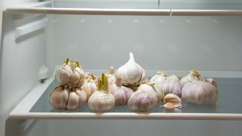 By all means, refrigerate peeled or separated cloves or garlic you've already minced. But the best way to keep garlic fresh is at room temperature. Any well-ventilated place that's out of direct light (like your pantry) is fine. If it's in a plastic bag, swap it into paper instead because paper won't trap moisture. I like to save onion bags for my garlic harvest and hang them in my basement. For the working garlic in my kitchen, I have a terra cotta garlic keeper that holds a few bulbs at a time and keeps them in excellent condition.
