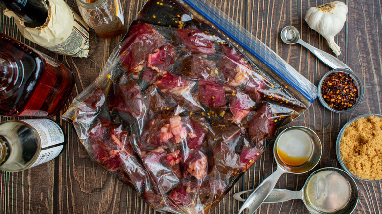 I'm not saying garlic doesn't belong in your marinades, because it's a good flavoring. The problem comes when your food leaves its comfy marinade bath and goes out to the grill or a hot skillet. If you've minced or finely chopped the garlic in your marinade, those small pieces will cling to the food when you start cooking it. Then, in the heat of the grill or the skillet, they're likely to burn, and we've already talked about the unpleasant flavor of burnt garlic.