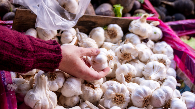 As garlic ages, it will begin to dry out. Those bulbs will feel dry and squishy to the touch, and the papery skins will be both looser and more papery. During the late winter and early spring, supermarket garlic is — generally speaking — not great. If you have access to international markets, you'll often find that the garlic there is both better and cheaper.