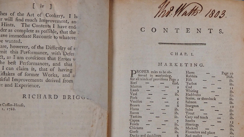 "The English Art of Cookery" was written in 1788 by Richard Briggs, a London tavern cook. This comprehensive cookbook, well over 600 pages, was intended to be a practical and straightforward guide for professional cooks and servants to follow. In the introduction, the author explains that the book is designed to be easily accessible and legible to the public: "To waste Language and high terms on such subjects, appears to me to render the Art of Cookery embarrassing, and to throw difficulties in the way of the reader." What follows are recipes ranging from eel soup and roasted pigeon to syllabubs and flummery.