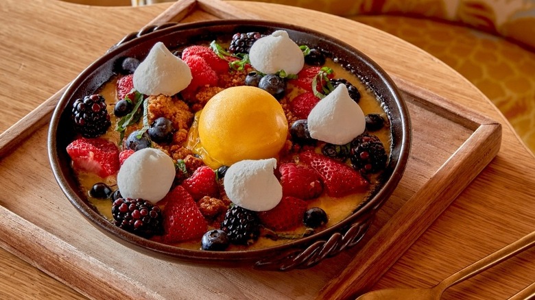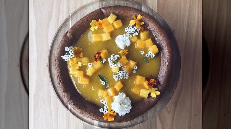 Makoto celebrates seasonality across its menu year-round, and you can always expect seasonally inspired sorbets for dessert. During the summer of 2025, however, it took things a step further and implemented a unique take on mango sorbet called the Toban Yaki. The pairing of passion fruit white chocolate, almond cookie crumble, and mango sorbet makes for a sweet, fresh dessert with just the right amount of crunch. It's the perfect sweet ending to round out your omakase or sushi sampler, no matter what time of year it is.