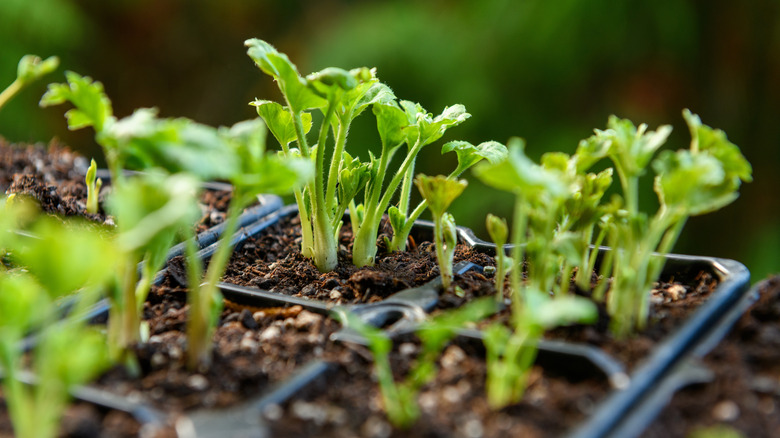 Different plants grow at different rates, of course, and just how long you should plan to have your seedlings in trays does vary. Celery, for instance, might take up to 12 weeks before it's ready to go in the garden, while cucumbers might be ready to go in as little as three weeks. Remember, too, that planning for transplanting outdoors isn't just about the air temperature, but the soil temperature as well. That's especially important for places that have cold winters, as you're going to want to let the soil get warm enough to encourage your plants' development. (That's generally at least 40 Fahrenheit, but again, that varies by plant.)