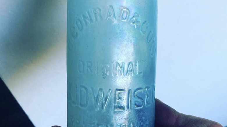 The color of the glass can indicate a more valuable bottle. Early Carl Conrad & Co. Budweiser bottles can be light blue or teal, for example, and can be sold for $100 or more a piece. Other rare colors include amethyst and yellow. These unique hues are typically priced higher than glass bottles that are clear, black, and amber.