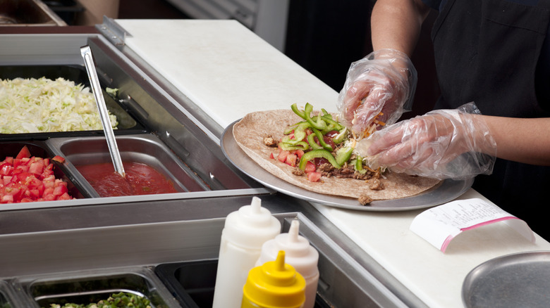 Before your choices of fillings were rolled up in steamed tortillas at Chipotle, foil-wrapped monster burritos were well-known items in California. Tracing the exact origins of these behemoth burritos is a bit of a tricky endeavor, but hefty Mission-style burritos are definitively associated with San Francisco. Burrito shops within the heavily latino Mission District of the city specialized in selling burritos filled with pork, flavorful Mexican rice, beans, and avocado wrapped up into large flour tortillas for years before they were first slid across counters at Chipotle.