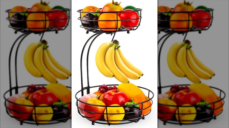 Take a look at this two-tier fruit basket from Auledio. With an upper and lower basket, you'll have plenty of space to keep apples, peaches, pears, and other fruits on your kitchen countertops. The design also features an integrated banana holder, making it an even more versatile piece. If desired, the upper basket can be removed, creating two separate pieces for holding fruit or bringing it to the table.