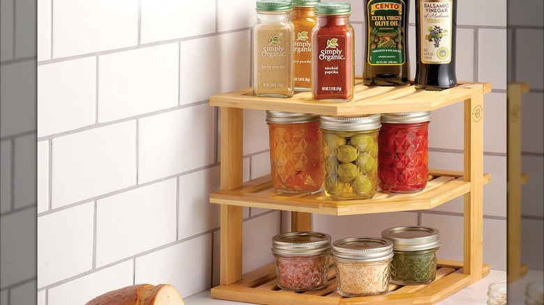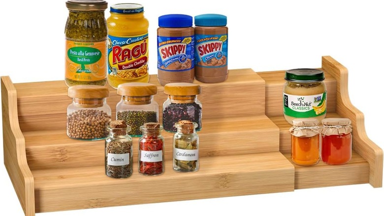 If you store your spices and seasonings on a shelf in a cabinet or in the pantry, then this bamboo spice rack might be the solution you've been searching for to keep everything organized and accessible. With its 3-tiered design, it is easier to identify which seasonings are in the middle or back rows — and to remove them without knocking everything else over or emptying out the cabinet. This option also features an expandable design (between 12.7 and 22.2 inches wide), allowing it to fit in the space that you have available.
