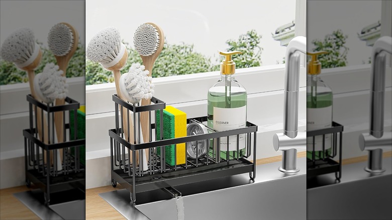Say goodbye to all that clutter around the kitchen sink with this caddy from Cisily. It features compartments to hold a sponge, cleaning brushes, soap bottle, and other small items to keep them neat and tidy. The stainless steel caddy also features a spout to drain water into the sink to ensure everything dries properly. The spout can also be rotated, allowing you to position the caddy in the most convenient location based on the layout of your sink.