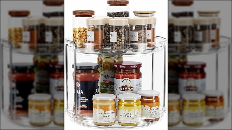 Using a Lazy Susan, such as this two-tier model from Lamu, is one of those kitchen organization hacks that can help make mealtime a breeze. With its double-decked design allows you to add usable storage space on the kitchen counter, in a cabinet, or in the pantry. You might use it to organize spice jars, hold small condiment bottles, or keep baking supplies easily accessible. Because the organizer rotates, you won't have to dig to the back of a shelf to find what you're looking for — instead, you can simply turn it until you find the desired item.
