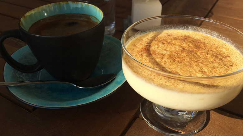 Aside from the light texture, Greek rice pudding is traditionally made with a healthy heaping of cinnamon on top. Like in many Greek dishes, from lasagna-like pastitsio to kota kokkinisti (a chicken and cinnamon dish), cinnamon in rizogalo is pretty much a non-negotiable. The dessert is usually simmered with a bit of cinnamon or a cinnamon stick in the milk and rice mixture, along with other spices and fragrances like nutmeg or vanilla. It's also common for citrus rind or zest to be added for extra brightness. But you'll nearly always find the cooled dessert served in cups or serving bowls dusted with a topping of cinnamon.