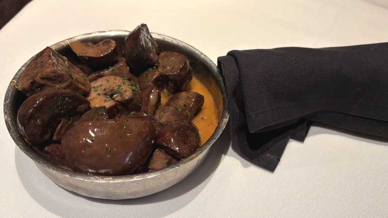 Seriously — I hope it's not weird to say this dish activated my salivary glands, but it did (not that I was outright drooling at my table, but you get the idea). Thyme was the perfect bright contrast and did just enough to lift the heavy dish out of deep savory territory. It was also perfect, texturally speaking. The mushrooms were easy to bite through but still retained plenty of body. They felt substantial as a side (even though the above doesn't look like a large dish), and this is a side that I couldn't pass up the next time I go to the steakhouse.