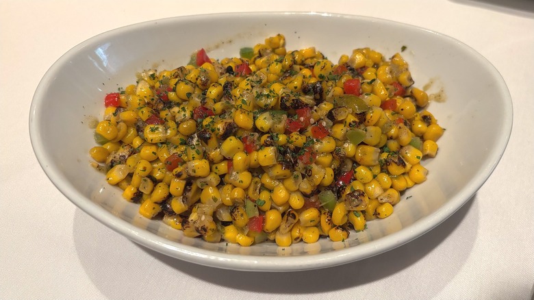 I was wrong when I assumed I'd need tortilla chips to enjoy Ruth's Chris' fire-roasted corn — I think I've simply been so sheltered by using corn-centric sides as a dip that I've never taken the time to appreciate them on their own. Well, now I have Ruth's Chris to thank for changing my tune. Along with sweet corn and roasted peppers, the dish is combined with Ruth's Chris homemade salsa verde, a truly stunning addition that effortlessly elevates this side from good to great.