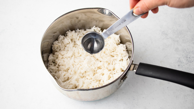 Consuming rice that's been contaminated with Bacillus cereus could leave you with a nasty bout of food poisoning, with symptoms including nausea, vomiting, and diarrhea. Thankfully, by following the correct cooling, storing, and reheating techniques, you can keep the bacteria at bay and protect yourself from illness, all while ensuring the rice remains perfectly tender and fluffy. Whether you're meal prepping for the week or accidentally cooked a surplus of the grain, a few simple precautions can keep you safe and prevent waste. So let's run through the key steps you'll need to follow.