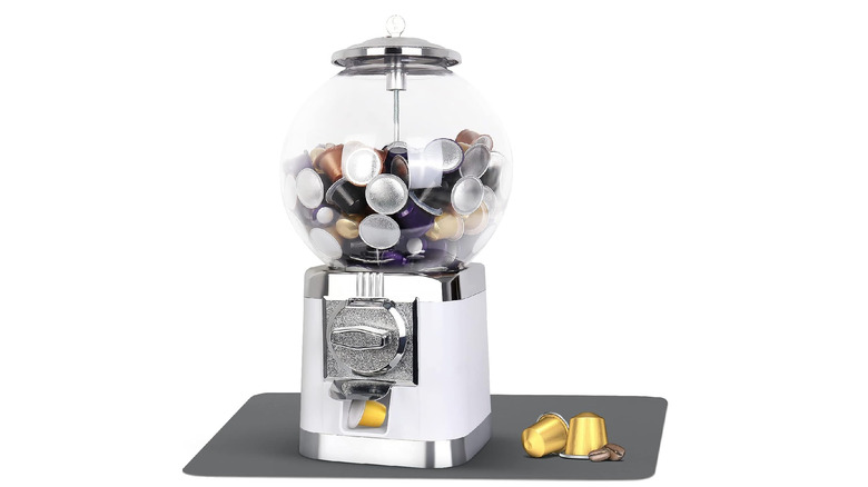 Nespresso machines are a super convenient way to brew all kinds of coffee. The brand offers tons of different flavors, ranging from plain and basic espresso to limited edition flavors like pistachio vanilla over ice. While this is a boon for the consumer, it can also be a bane for the indecisive coffee fan. Having too many flavor pods can lead to you needing to make a tough decision directly after waking up — before you've even had your morning coffee. If this is a frequent problem for you, though, fear not. There's a simple, stylish solution to help you pick your coffee flavor in the morning: a Nespresso pod gumball machine.