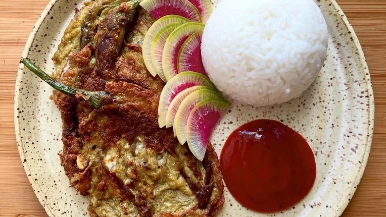 While the first banana ketchup was quite simple, nowadays recipes have evolved to reflect the tastes and culinary ingenuity of home cooks and chefs. For instance, some recipes call for adding aromatics like garlic, ginger, and allspice to simmering onions, banana, and vinegar then blending together all the ingredients and serving with tortang talong (a traditional Filipino eggplant omelette). Other banana ketchups also include soy sauce and a bit of tomato paste, which gives the sauce a kick of umami, reminiscent of that in the tomato-based version. And finally, many offer heat from chiles like jalapeños, which makes for the perfect pairing alongside spam or garlic-fried rice. If you're new to banana ketchup, the good news is you can pick it up in Filipino markets and feature it in your next pork dish, or experiment with making the sweet condiment in your own kitchen. If that seems too much like hard work, there are many brands available online, including this FilaManila-brand spicy banana ketchup from Amazon.