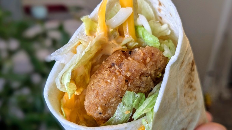 Despite the lackluster sauce, the Ranch Snack Wrap's chicken and extra fixings still checked all the boxes. The lettuce tasted fresh, especially against the exceptionally soft, melt-in-your-mouth tortilla. The cheese was warm enough that it didn't have the chalky texture that cold shredded cheese typically has, but it wasn't so hot that it became goopy.