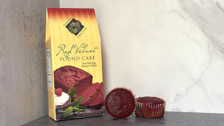 Sure, these weren't the reddest cupcakes of the bunch, but that's not why I stuck them in spot number five. I initially had pretty high hopes for this selection — after all, who doesn't love a chocolate pound cake, especially when it's been given a red velvet twist? Moreover, the picture on the packaging is too tantalizing to ignore. Unfortunately, the only thing that gave this mix a leg up over the former was its resulting texture.