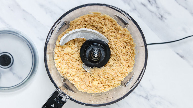 - Add the grated cheddar and butter cubes, and pulse until the mixture resembles coarse crumbs.