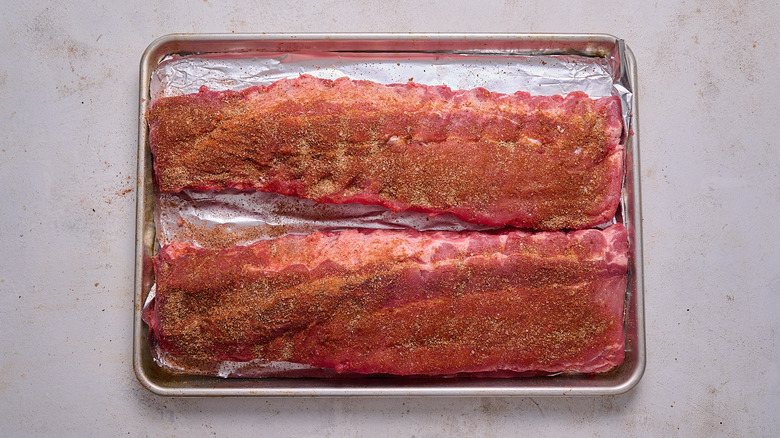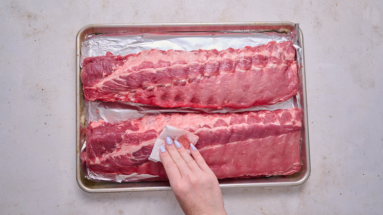 Pat the ribs completely dry and place them on a foil-lined sheet tray.