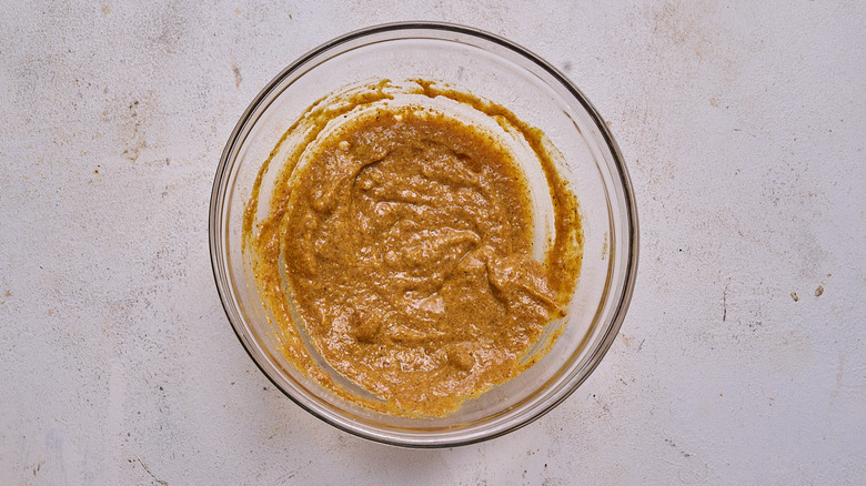 In the meantime, make the barbecue sauce. Combine the mustard, sugar, and spice mixture in a large bowl.