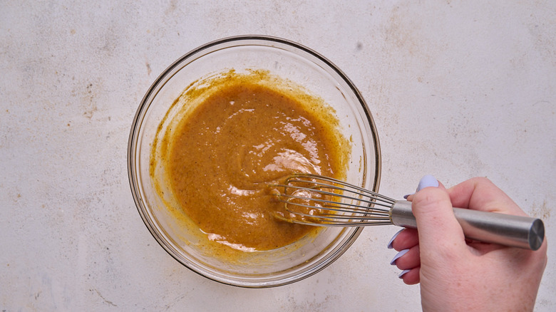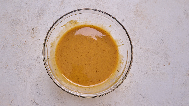 Stir in the honey and vinegar, then add water 1 tablespoon at a time until you've reached your desired consistency.