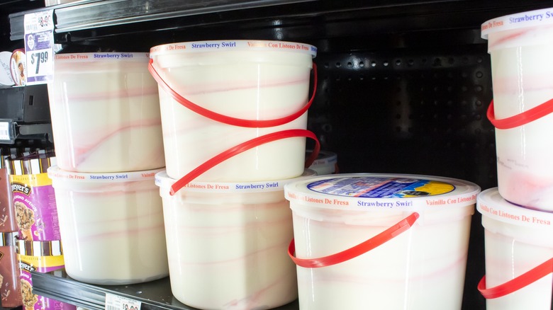An enormous plastic pail of ice cream