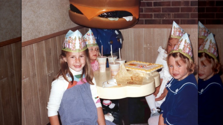 If you were lucky enough to have your birthday party at a fast food restaurant or designated venue such as McDonald's, ShowBiz Pizza, or Chuck E. Cheese, you got to enjoy the venue's party menu. While some venues like McDonald's had secret birthday cakes for parties, others let you bring your own. Most places offered standard kids' party foods including pizza, burgers, fries, nachos, and soda pitchers, and many had a designated party room for parents to rent.