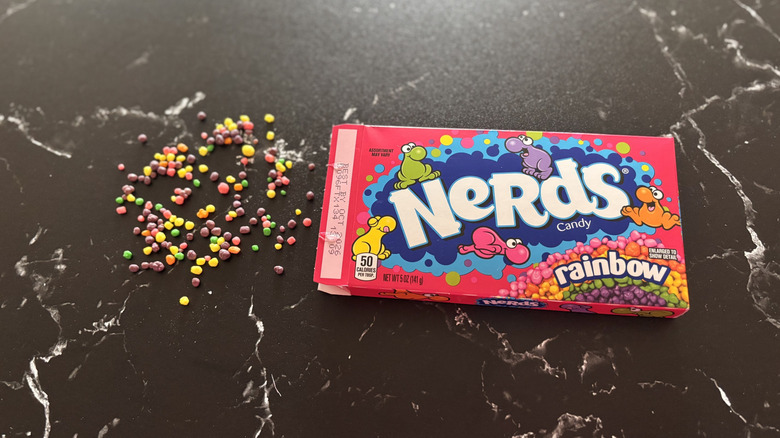 So, why the low(ish) ranking? Well, let's be real — Nerds are not the most realistic candy to eat at a movie theater. The only way to feel satisfied by Nerds is to pour a heaping amount directly into your mouth, and during a movie, this is no easy feat. Plus, the individual Nerds are so tiny and spill easily, so this ranking is more of a practicality one than anything else. If we were talking Nerds gummy clusters, it would be a different story. But plain old Nerds, tasty as they may be, simply are not the ideal movie theater snack.